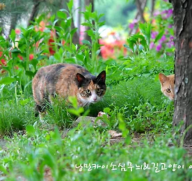 우린 익숙한 사이. 안녕하세요, 얼음마녀 입니다. 서당 마을을 지나 화단 마을을 가려면 놀이터 하나를 지나가게 됩니다. 그 놀이터에서 한결같이 매일 마녀를 기다리는 고양이 한마리가 있습니다. 소야. 소야는 원래 사야와 함께 주차장 마을 급식소를 이용하던 고양이 였습니다. 주차장 마을은 이미 오래전에 밥주기가 힘들어져서 없어진 마을 입니다. 그렇다해도 주차장 마을 고양이들이 굶고 있지는 않으니 끼니 걱정은 않하셔도 됩니다. 밥을 굶고 있지는 않으나 좋아하는 캔을 먹을수가 없게 되어버리자 소야는 매일 새벽 화단 마을을 향해 발걸음을 옮기는 마녀의 발목을 붙잡고 있습니다. 비가오나 눈이오나 바람이 부나 항상 같은 자리에서 마녀를 기다리는 소야는 좀처럼 곁으로 다가오지 않습니다. 언제나 비슷한 자리 비슷한 거리를 유지하며 마녀가 .. 더보기 밥 시간에 꾸물럭 거리지 말자. 안녕하세요, 얼음마녀 입니다. 마녀네 고양이 마을에 많은 비가 내렸습니다. 딩동댕동 마을은 마녀네 고양이 마을 중 유일하게 하루 두번의 급식이 이루어지는 곳 입니다. 많은 비가 종일 내리고 있었고, 몸도 맘도 추욱 쳐지는것이 밥 배달 시간이 되었지만 쉽사리 자리를 털고 일어나지 못하고 있었습니다. 날씨 탓 이었을 겁니다. ' 이렇게 비가 많이 오는데 누가 와서 기다리고 있으려나.... 천천히 나가도 되겠지. ' 라고 생각하며 스스로 에게 합리화를 해 주고 있었습니다. 그렇치만 마음 한구석 에선 뮤가 와 있을지도 모르는데... 뮤가 와 있으면 곤란한데.... 지하식당 애들이 하염없이 기다릴텐데.... 결국 밥배달 시간을 30분이나 넘긴 후 에야 주섬주섬 밥가방을 챙겨 집을 나섰습니다. 뮤의 급식소가 보이고.. 더보기 1년만의 조우 안녕하세요, 얼음마녀 입니다. 사나흘 전에 화단마을에 갔다가 정말 반가운 손님을 만났습니다. 화단마을 원년 밥손님 희빈 입니다. 1년만에 다시 만난것 같습니다. 살아 있을거란 믿음을 갖고 있었지만, 그래도 마음 한 구석에선 안녕을 하고 있었는데 생각없이 밥 배달 열심히 하고 있으니 만나지게 되는군요. 희빈은 화단마을 원년 고양이들 중에서 유일하게 살아 있을성 싶다고 해도 과언은 아닐것 같습니다. 희빈은 사람을 묘하게 안달하게 만드는 매력이 있습니다. 그 생김새 만으로도 시선을 사로잡는 매력이 있지만, 가까이 다가올듯 다가오지 않고, 도망갈듯 하지만 도망가지 않는..... 마치 간을 본다고나 할까요. 또한, 희빈은 식성 또한 별나서 건사료 외에는 전혀 먹질 않습니다. 처음엔 그런 식성을 몰라보고 어떻게든 .. 더보기 이전 1 ··· 22 23 24 25 26 27 28 ··· 252 다음